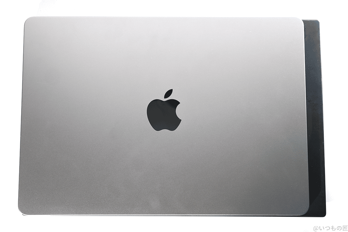 M2 MacBook Airの薄くて頑丈なアルミニウム素材の外装は、手触りよく、安定した印象を受けます。しかし、キレイな面であるが故に、すぐに指紋や曇りが気になるのが難点です。